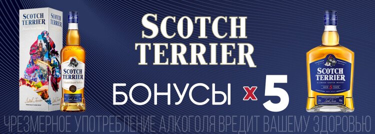 С 28.04.2025 по 31.05.2025 в магазинах «Дилан» акция: Х5 бонусов на карту лояльности за покупку виски Скотч Терьер!